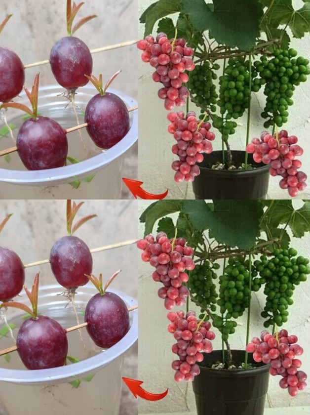 Was passiert, wenn Sie 3 Trauben in einen mit Erde gefüllten Topf geben? Das passiert nach nur 10 Tagen.