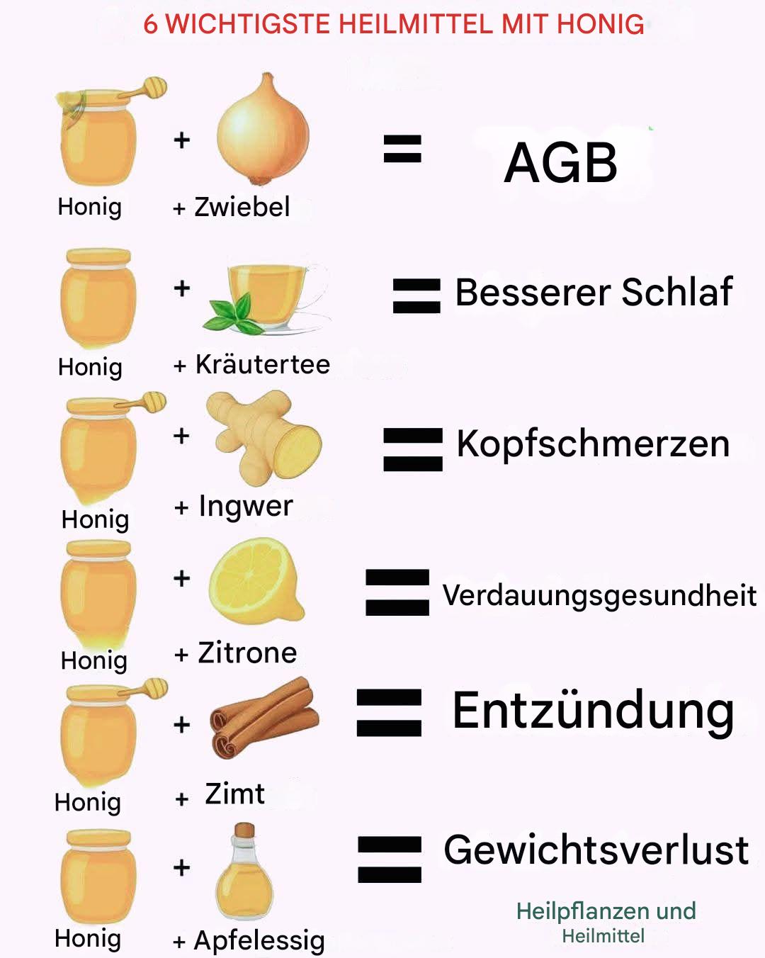 Honig wird seit Jahrhunderten nicht nur als Nahrungsmittel, sondern auch als wirksames Heilmittel geschätzt. Reich an Antioxidantien, Enzymen, Vitaminen und antibakteriellen Wirkstoffen, lässt er sich dank seiner Vielseitigkeit mit anderen natürlichen Inhaltsstoffen kombinieren, um häufige Beschwerden zu lindern und den Körper zu stärken. Im Folgenden stelle ich sechs traditionelle Honigheilmittel vor, die Ihnen auf natürliche und effektive Weise zu mehr Wohlbefinden verhelfen können.