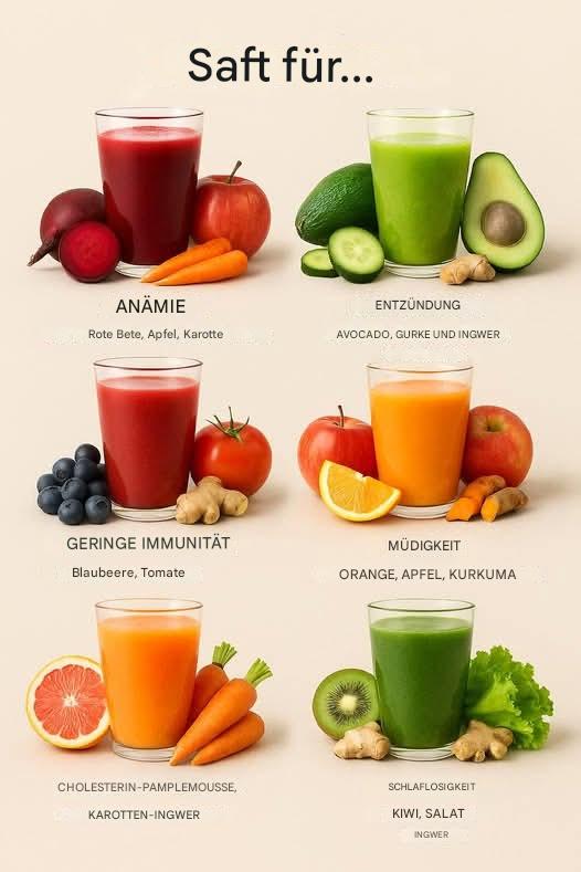 Suchen Sie nach einer natürlichen Möglichkeit, Ihre Energie zu steigern, Ihren Schlaf zu verbessern, Entzündungen zu reduzieren oder Ihr Immunsystem zu stärken? Die Lösung könnte in Ihrer Küche liegen. Frische Obst- und Gemüsesäfte sind eine der einfachsten Möglichkeiten, Ihren Körper mit wichtigen Nährstoffen zu versorgen und bestimmte gesundheitliche Probleme zu behandeln, ohne synthetische Nahrungsergänzungsmittel oder aggressive Medikamente.