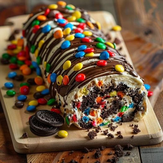 Dieses Rezept ist eine Hommage an jedermanns liebste süße Leckereien! Wir haben fluffigen Schokoladenkuchen, eine cremige Erdnussbutterfüllung und eine dekadente Schokoladenganache, alles gespickt mit M&Ms und Reese’s für ein lustiges und festliches Dessert.