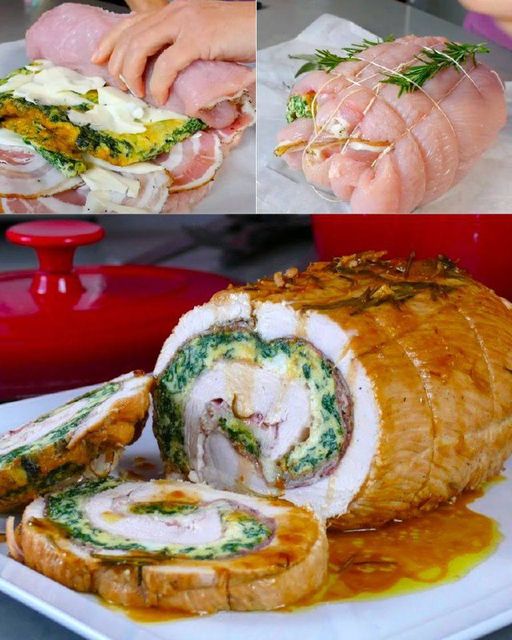 Zutaten: 1kg ca. Putenbrust 150 g gerollter Speck 3/4 Eier 100 g Spinat 30/40 g geriebener Käse 100 g süße Scamorza ein halbes großes Glas Weißwein Salz Pfeffer Rosmarin, Salbei, Natives Olivenöl extra Vorbereitung: … Lire plus