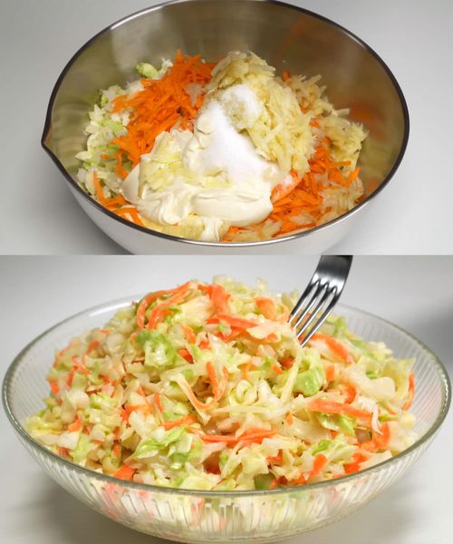 Zutaten: 1 kleiner Weißkohl, fein gehobelt 2 Karotten, gerieben 1 kleine rote Zwiebel, fein gehackt 1 Tasse Mayonnaise 2 Esslöffel Apfelessig 1 Esslöffel Zucker 1 Teelöffel Senf Salz und Pfeffer nach Geschmack Zubereitung: … Lire plus