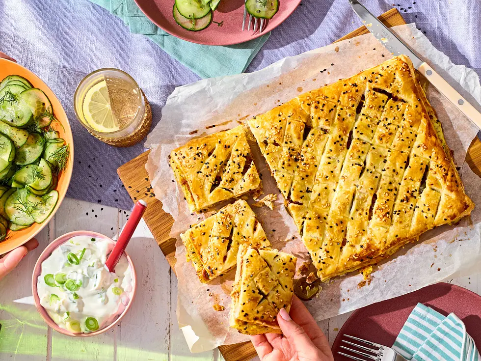 Hier ist ein einfaches und leckeres Rezept für einen Chicken-Blechkuchen “Hot & Cheesy”: