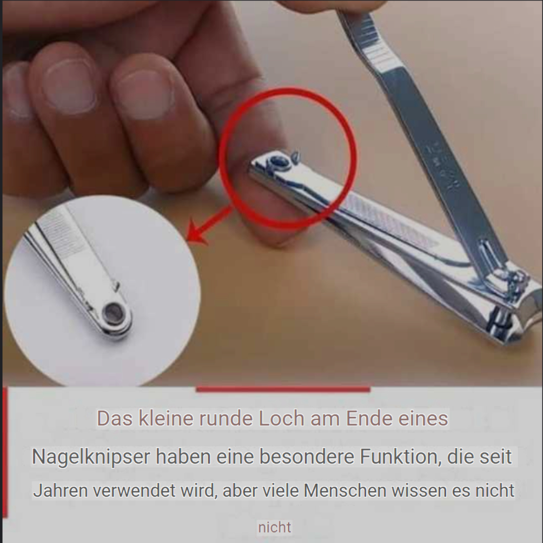Nagelknipser sind ein gängiger Haushaltsgegenstand, der hauptsächlich zum Schneiden von Nägeln verwendet wird, aber sie haben auch andere clevere Verwendungsmöglichkeiten, nicht zuletzt dank des kleinen runden Lochs am Ende. Hier sind einige überraschende Möglichkeiten, es zu verwenden:
