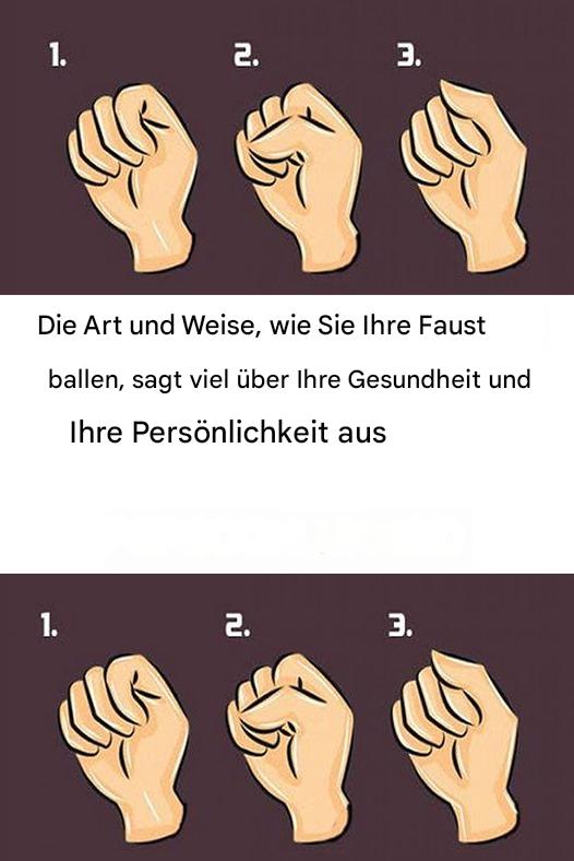 Nach der Form und Länge Ihrer Finger, den Linien Ihrer Hand, der Form Ihrer Nase… Wer hätte gedacht, dass die Art und Weise, wie du die Faust ballst, auch viel über deinen Charakter und deine Gesundheit verrät? Ballen Sie also die Faust und vergleichen Sie die Position Ihres Daumens mit der auf den Bildern unten, um mehr über Ihre Persönlichkeit und Ihre Gesundheitsmerkmale zu erfahren.