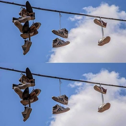 Spontanität und Spaß. Viele sehen in diesem Akt einen einfachen Wunsch zu spielen oder eine Spur ihres Übergangs zu hinterlassen. Ein erstes Paar hängende Schuhe kann oft andere inspirieren und ein virales Phänomen in einer Nachbarschaft auslösen.