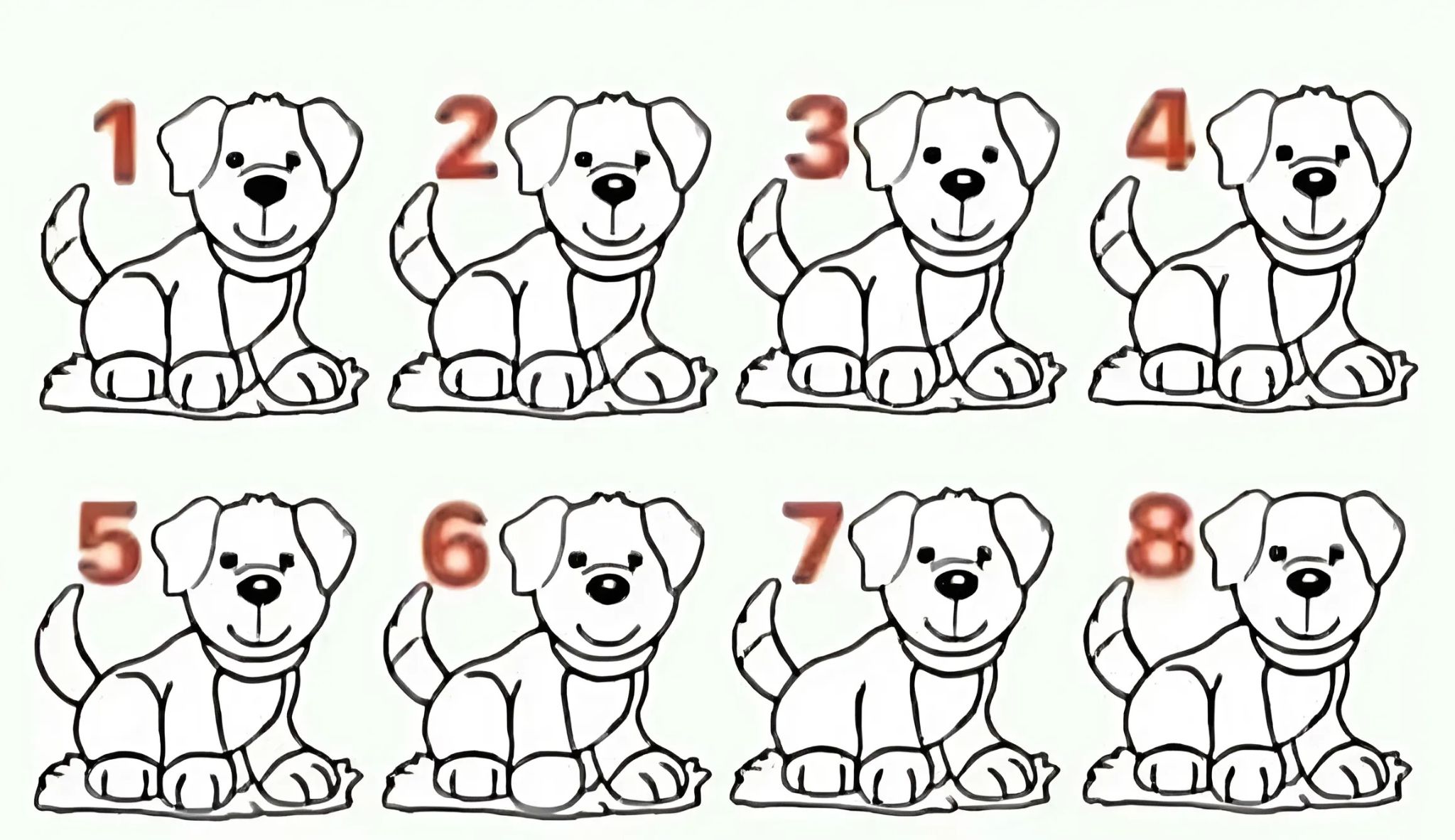 Wenn du schnell hinschaust, siehst du vielleicht sofort, dass Hund Nummer zwei etwas an seinem Bein fehlt. Andere entdecken, dass die Nummer sechs eine seltsame Markierung unter der Nase hat.