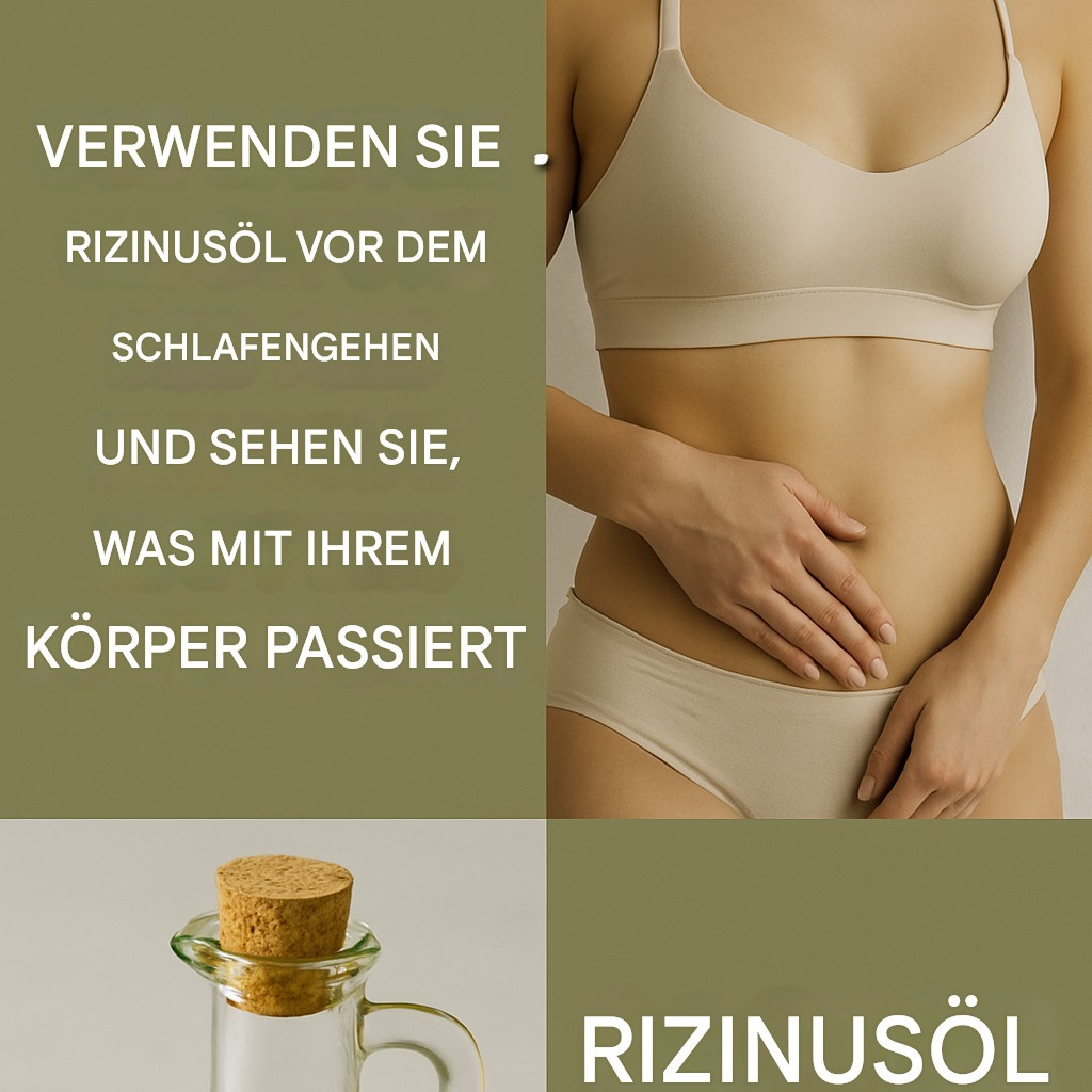 Massieren Sie Rizinusöl vor dem Schlafengehen sanft mit kreisenden Bewegungen auf Ihren Bauch. Dies kann die Verdauung anregen, Blähungen oder Verstopfung reduzieren und zu einem reibungsloseren Stuhlgang führen.