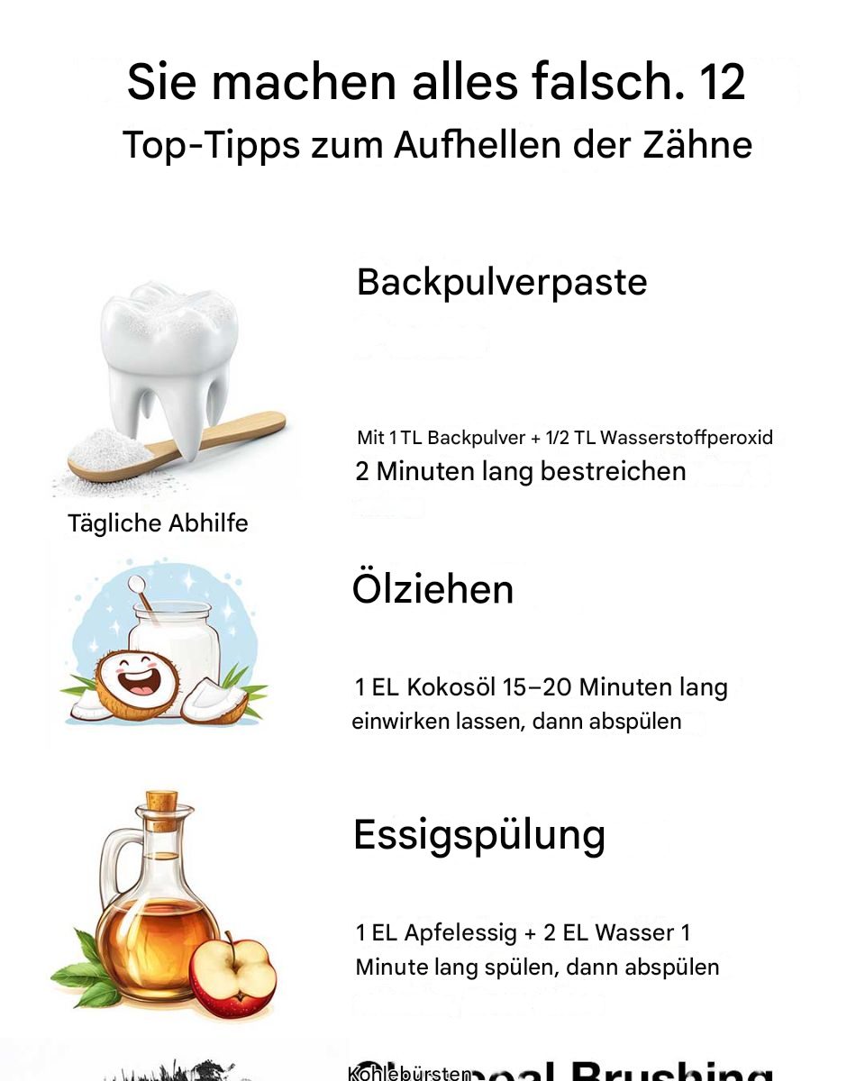 In der heutigen Welt wird ein strahlendes, weißes Lächeln oft als Symbol für Gesundheit und Schönheit angesehen. Viele Menschen haben jedoch aufgrund verschiedener Faktoren wie Ernährung, Lebensstil und Genetik mit Zahnverfärbungen zu kämpfen. Es gibt zwar zahlreiche Produkte und Behandlungen, aber nicht alle sind wirksam oder sicher. In diesem Artikel werden 12 Top-Zahnaufhellungs-Hacks vorgestellt, die Ihnen helfen können, ein strahlendes Lächeln zu erzielen, ohne die Bank zu sprengen oder Ihre Mundgesundheit zu gefährden.