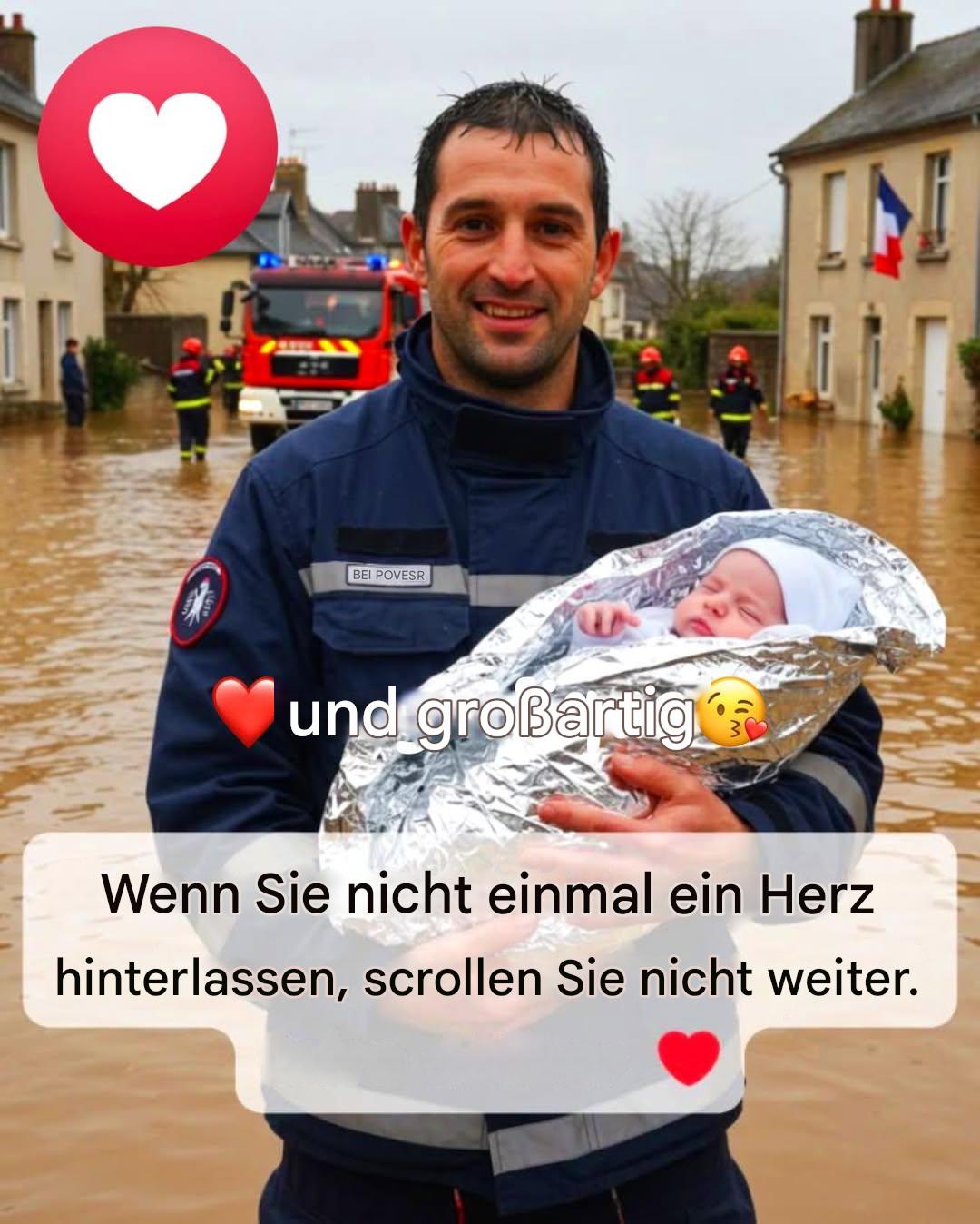 In der Zwischenzeit taten die Feuerwehrleute, die seit dem Morgengrauen mobilisiert waren, ihr Bestes, um die kritischsten Gebiete zu erreichen. Unter ihnen gab es einen Mann, der sich weder von Müdigkeit noch von Gefahr aufhalten ließ: Sergeant La Poeyer, ein erfahrener Feuerwehrmann, der für seinen Mut und seine Menschlichkeit respektiert wurde. Als er den Funkruf erhielt, dass eine Familie mit einem Säugling gestrandet war, zögerte er nicht.
