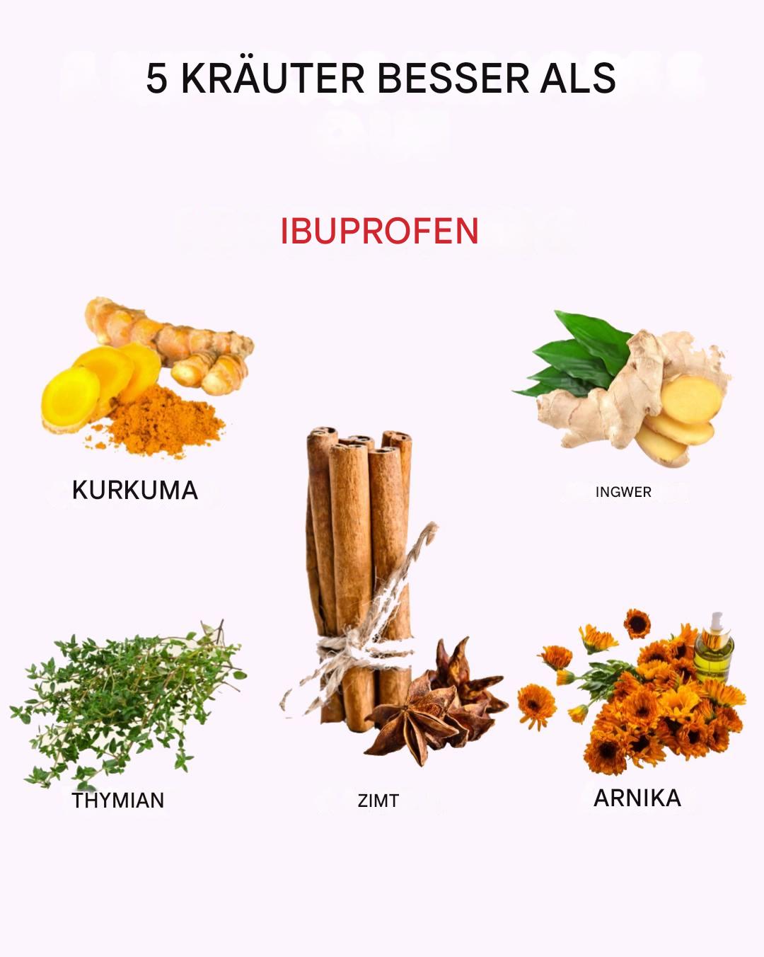 Ibuprofen ist eines der weltweit am häufigsten verwendeten Schmerzmittel und Entzündungshemmer. Längerer Gebrauch kann jedoch Nebenwirkungen wie Magenschäden, Bluthochdruck oder Nierenprobleme verursachen. Glücklicherweise bietet die Natur Alternativen, die nicht nur wirksam, sondern auch sicherer und gesundheitsfördernder sind. Im Folgenden stellen wir fünf Heilkräuter mit nachgewiesener Wirkung zur Linderung von Schmerzen und Entzündungen vor, die viele für noch wirksamer als Ibuprofen halten.