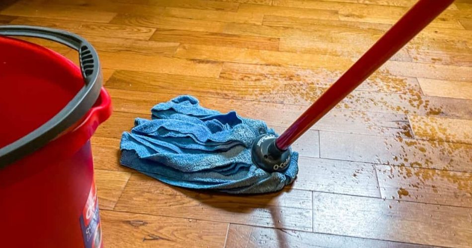 Befeuchten Sie als Nächstes einen Mopp oder Schwamm mit der Reinigungslösung und wischen Sie die Böden ab, wobei Sie darauf achten müssen, alle Bereiche zu bedecken. Mit dieser Behandlung haben Sie einen Boden, der eine Woche lang glänzt.