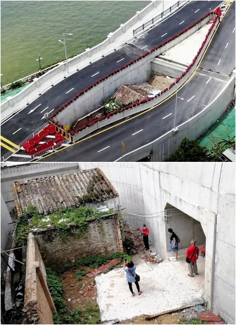 Die Pläne für den Bau einer Autobahn in der chinesischen Provinz Guangdong sahen die Umsiedlung von Häusern vor, die entlang des Verlaufs der zukünftigen Straße liegen. Die Angebote, die der Frau gemacht wurden, umfassten zwei Dreizimmerwohnungen und den Betrag von 200.000 Dollar. Eine solche Entschädigung gilt für das dicht besiedelte China als sehr großzügig. Der Eigentümer des Hauses wiederum forderte vier Wohnungen und 300 Tausend Dollar. Nach jahrelangen Verhandlungen entschied man sich schließlich, den Forderungen der Frau nicht nachzugeben und den Weg so zu pflastern, dass sie ihr Haus umgeht.