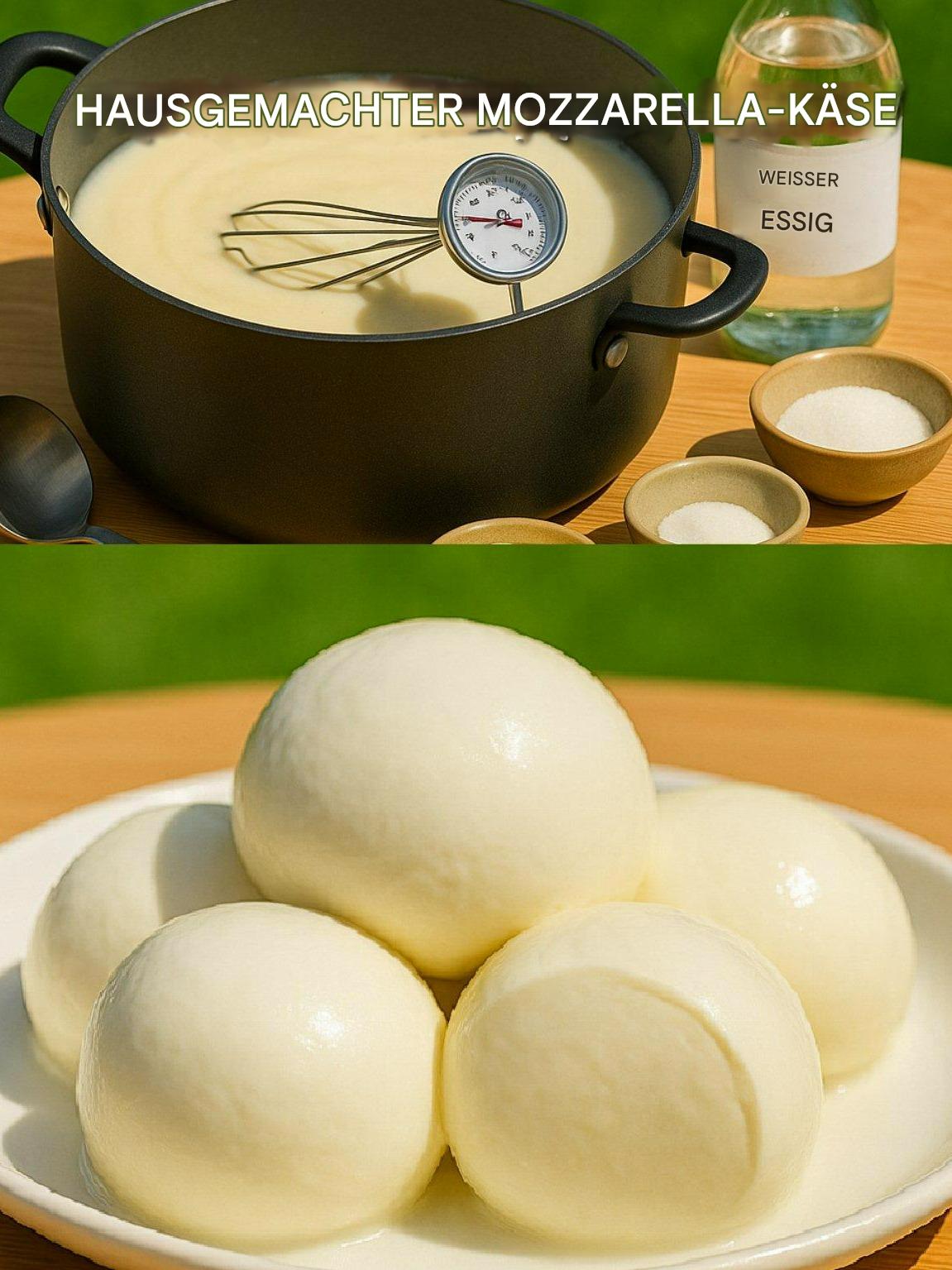 Dieses Rezept zielt darauf ab, einen frischen und fluffigen Mozzarella (oft frischer Mozzarella oder Mozzarella fior di latte genannt) zuzubereiten, der sich ideal zum Belegen eines Caprese-Salats, zum Schmelzen auf einer Pizza oder einfach zum frischen Genießen eignet.