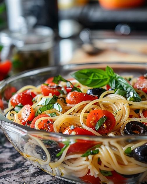 Der helle und fröhliche kalifornische Spaghettisalat ist eine wahre Darstellung der kalifornischen Lebensart. Eine pikante italienische Vinaigrette, frisches, knackiges Gemüse und herzhafte Spaghetti ergeben einen köstlichen Salat. In den wärmeren Monaten ist es eine köstliche Beilage oder ein Potluck-Gericht. Mit seinem Regenbogen an Farben und vielen Texturen ist diese Mahlzeit sicher ein Hit für jeden Esser.