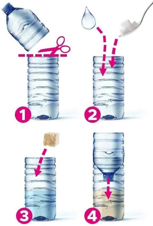 Im Gegensatz zur Mückenlampe ist dieser Mückenfänger kostengünstig und einfach herzustellen. Sie benötigen lediglich eine einfache Plastikflasche und die folgenden Zutaten: