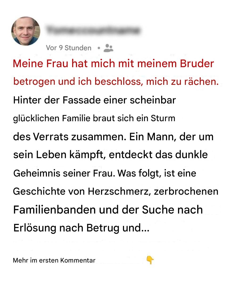 Alles begann mit kleinen Anzeichen, die ich auf Stress oder Angst zurückführte. Dann bemerkte ich viele geheime Verhaltensweisen: Nachrichten, die sie versteckte, späte Ausflüge und sogar Stimmungsschwankungen, die ich anfangs auf Stress bei der Arbeit zurückführte. Als ich sie schließlich zur Rede stellte, leugnete sie es zunächst, dann gestand sie, dass sie und mein Bruder seit über einem Jahr eine Affäre hatten. Ich war am Boden zerstört und sie entschuldigte sich und sagte, dass es ein Fehler war und dass sie wollte, dass wir die Dinge in Ordnung bringen.