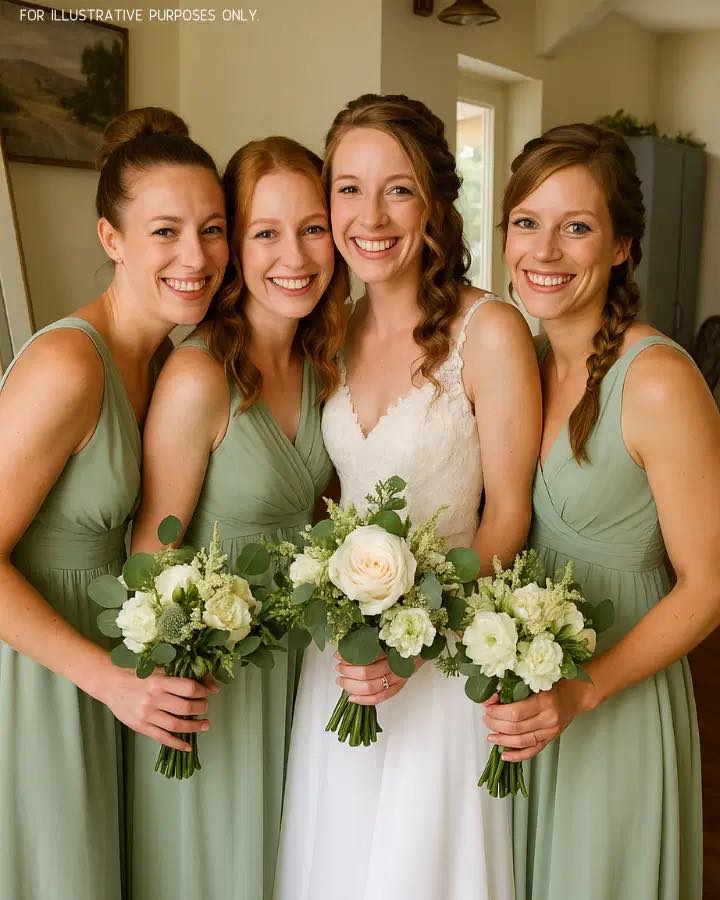 Die Brautgesellschaft glänzte in ihren Kleidern, und der Fotograf hielt jeden freudigen Moment fest.
