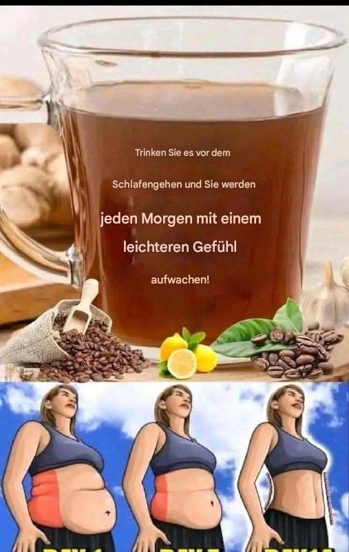 Trinken Sie es, bevor Sie ins Bett gehen und jeden Tag leichter aufwachen. Dieses starke Schlankheitsgetränk wird den Stoffwechsel anregen und Fett verbrennen. Sie werden spüren, wie das Fett in kürzester Zeit verschwindet. Wenn Sie versuchen, ohne Erfolg Gewicht zu verlieren, probieren Sie auf jeden Fall dieses Getränk.
