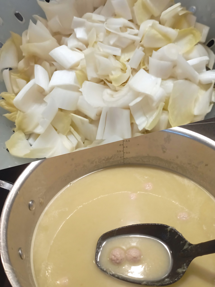 Diese gemahlene Chicorée-Suppe ist ein wahrer Genuss für Ihre Geschmacksknospen. Die weiche Bitterkeit des Chicorée, kombiniert mit der Süße des Apfels und einem Hauch von würzigem Curry, macht diese Suppe zu einer eleganten und nahrhaften Suppe. Ideal als Vorspeise oder leichte Mahlzeit, und mit der Möglichkeit, Hähnchenbällchen hinzuzufügen, wird es ein absoluter Genuss sein.
