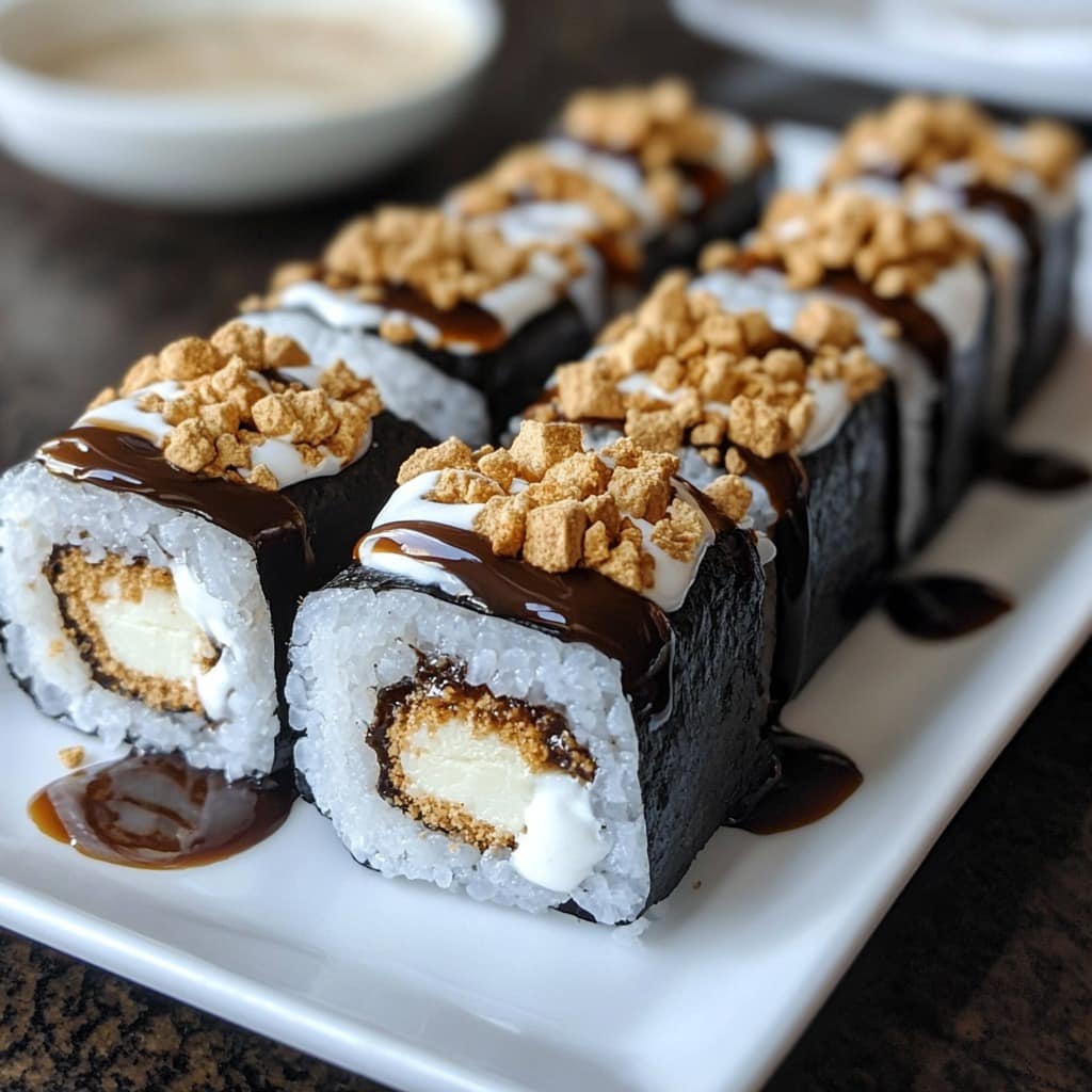 S’mores Sushi ist eine unterhaltsame und einfallsreiche Art, die beliebten Aromen von Marshmallows, Graham-Crackern und Schokolade am Lagerfeuer in einem von Sushi inspirierten Brötchen zu genießen. Dieses einfache Dessert ohne Backen kombiniert knuspriges Müsli, klebrige Marshmallows und einen reichhaltigen Schokoladennieselregen zu einem auffälligen Leckerbissen, der sich perfekt für Partys und Zusammenkünfte eignet.
