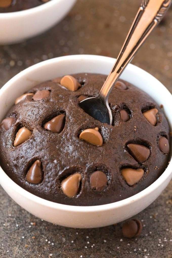 Geben Sie alle Zutaten außer den Schokoladenstückchen in einen Mixer oder eine große Rührschüssel und mixen Sie, bis ein glatter Teig übrig bleibt. Rühren Sie die Schokoladenstückchen unter und behalten Sie einige für die Oberseite zurück.