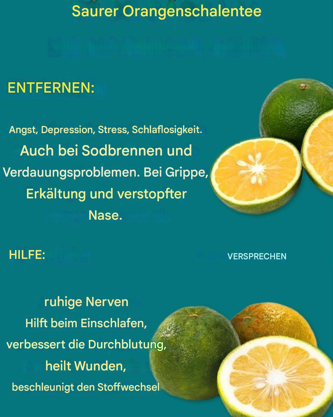 Saurer Orangenschalentee kann bei der Verdauung, dem Immunsystem, dem Cholesterinspiegel und vielem mehr helfen.