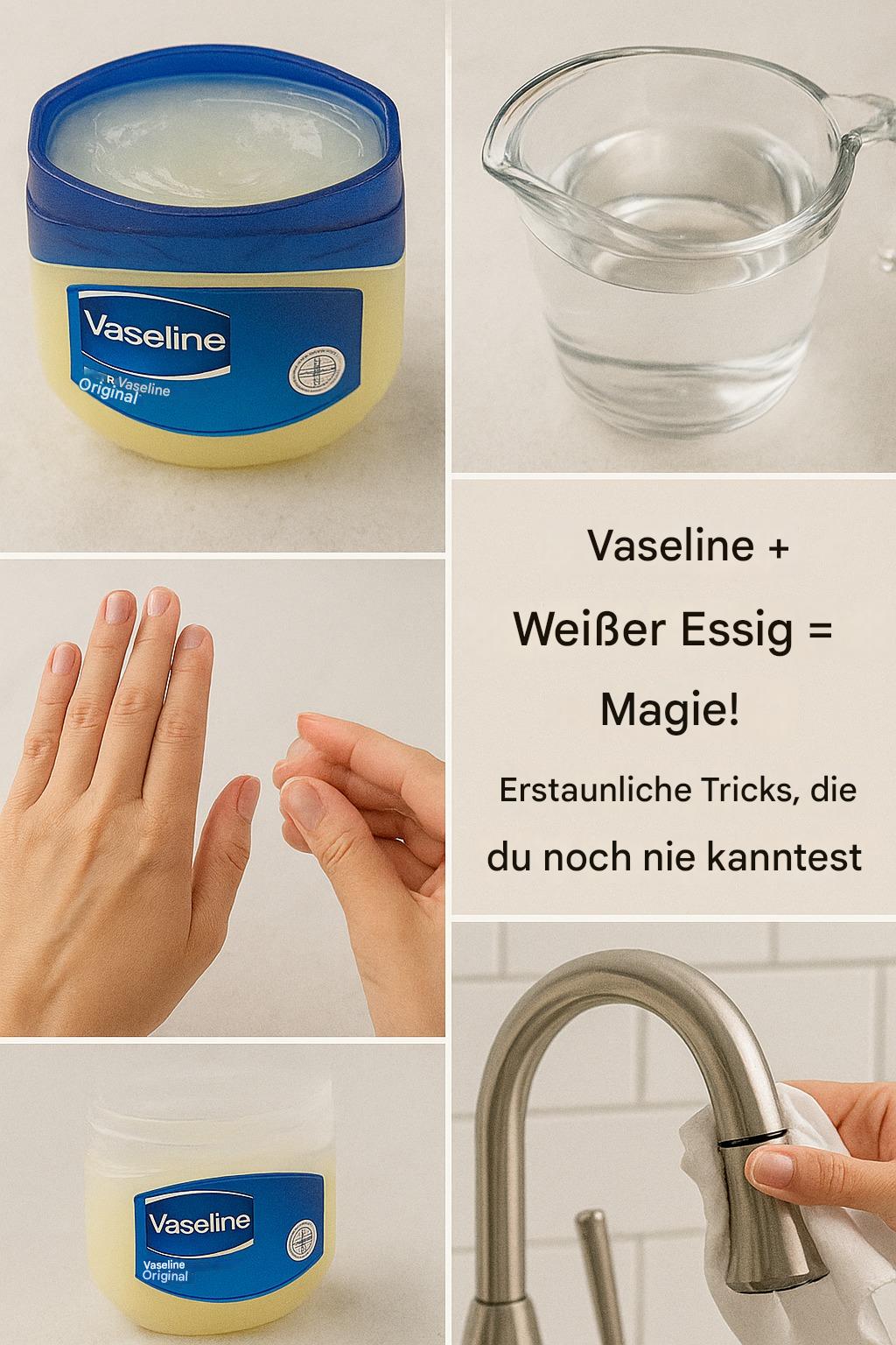 Wir alle haben bestimmte Grundprodukte im Haushalt, die wir für ihre vorgesehenen Zwecke verwenden. Aber wussten Sie, dass die Kombination zweier gängiger Haushaltsartikel – Vaseline und Weißwein – wirksame Lösungen für verschiedene Probleme bieten kann? Dabei handelt es sich um folgende Produkte, kombiniert mit oder ohne Änderungen, die Wunder für Ihre Haut, Ihr Zuhause und Ihren Alltag bewirken. Hier sind zehn unglaubliche Tricks, die Ihnen dieses gewöhnliche Produkt in einem ganz neuen Licht erscheinen lassen.
