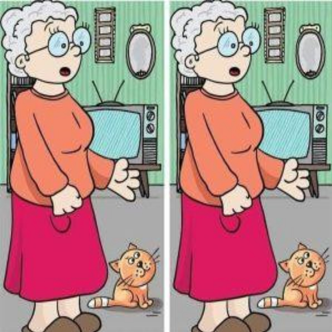Auf diesem bezaubernden Bild sehen Sie eine Großmutter und ihren Enkel in ein zeitloses Gespräch vertieft. Es gibt jedoch einen Unterschied zwischen den beiden Bildern, ein Detail, das eines der Bilder einzigartig macht. Ihre Aufgabe besteht darin, dieses Element zu entdecken, das eine subtile Geste, ein einzigartiger Gesichtsausdruck oder ein Detail des Dekors sein kann.