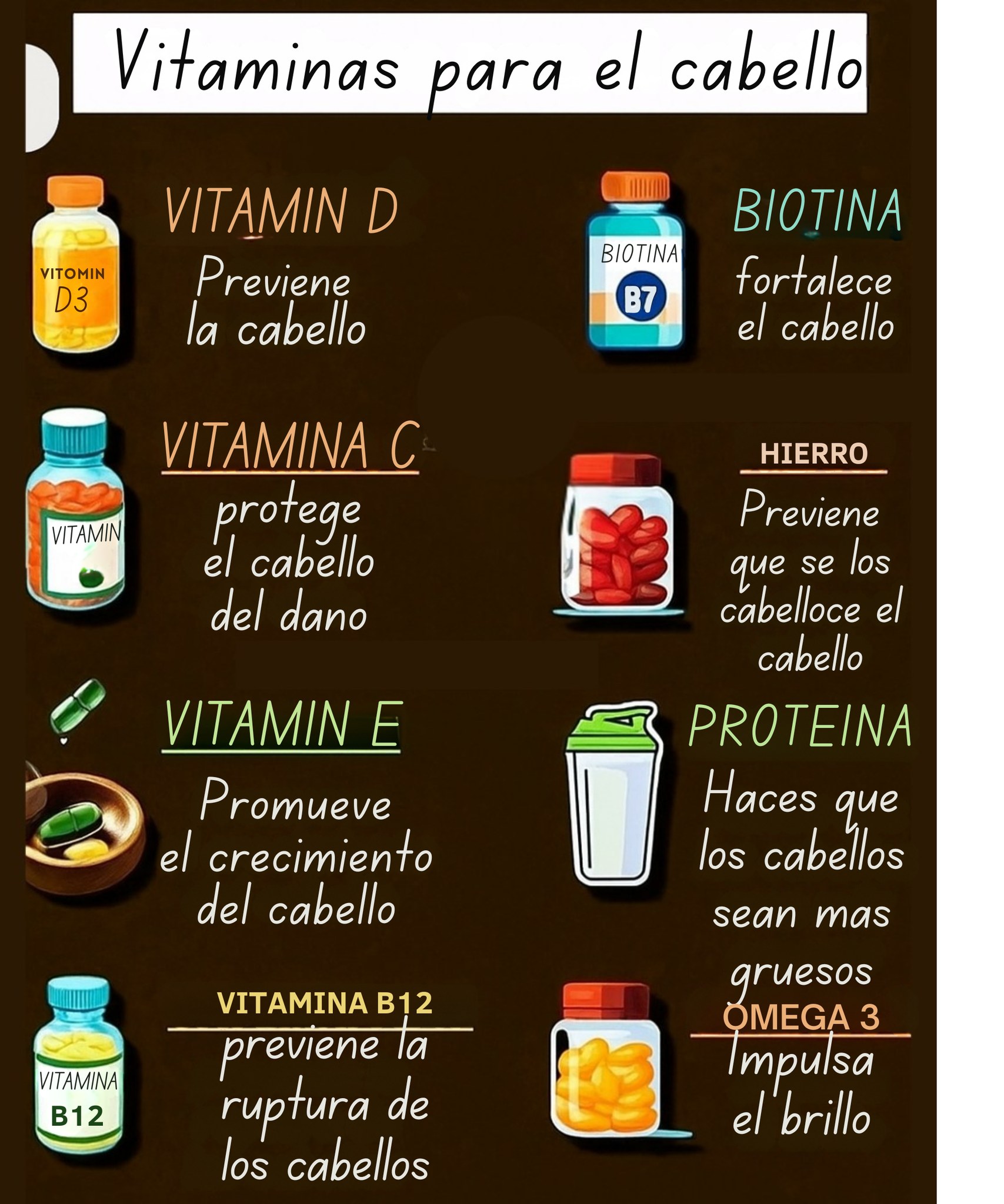Ein visueller Leitfaden zu Nährstoffen, die das Haarwachstum, die Stärke und den Glanz fördern.