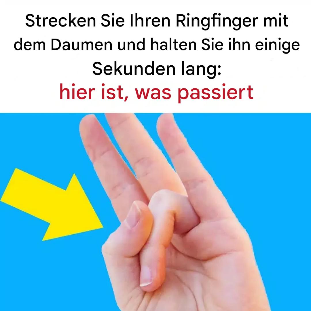 Ziehen Sie mit dem Daumen an Ihrem Ringfinger und halten Sie ihn einige Sekunden lang gedrückt: Finden Sie heraus, was als nächstes passiert.